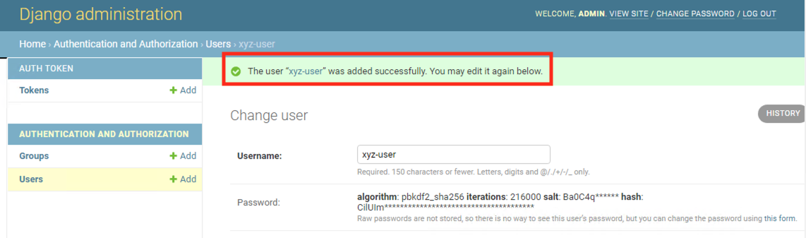 We will create a new user in the Django application which we will then use in authenticating to front end React application.