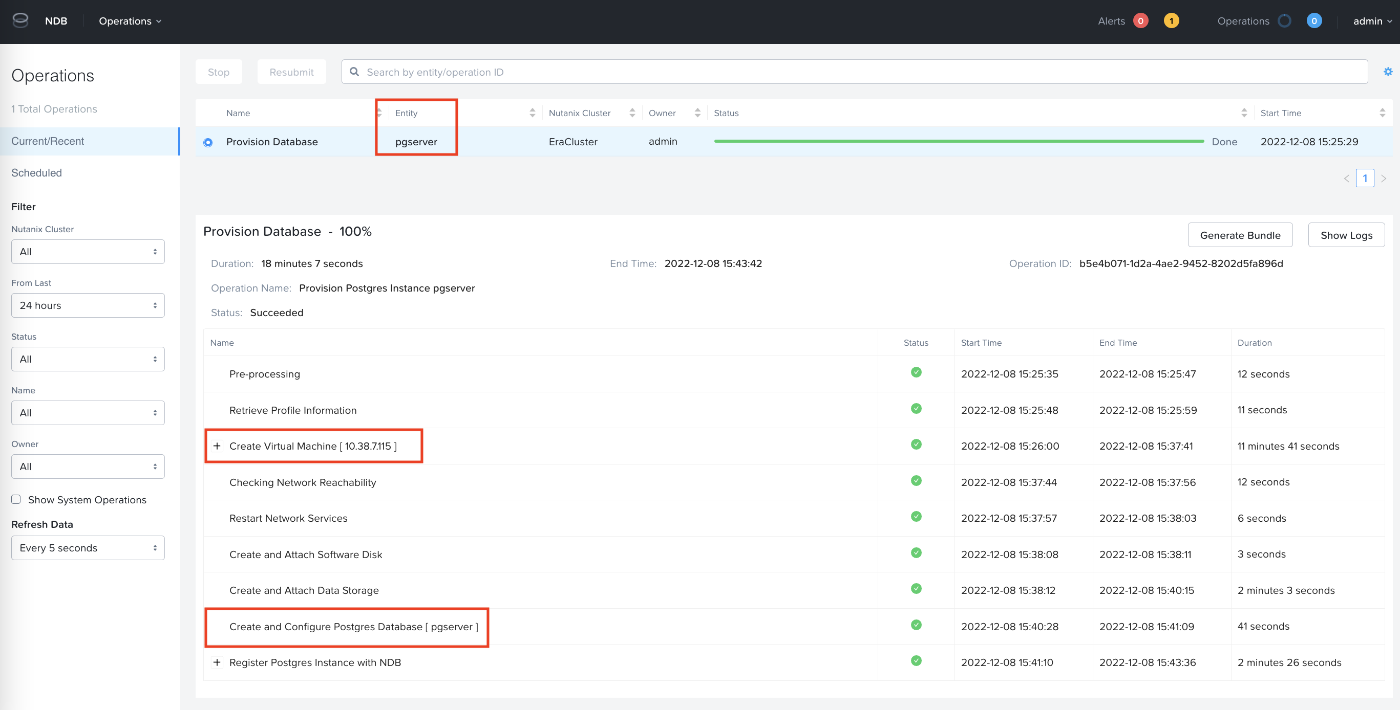 - NDB server will create the Postgres database VM (instance) and postgres database