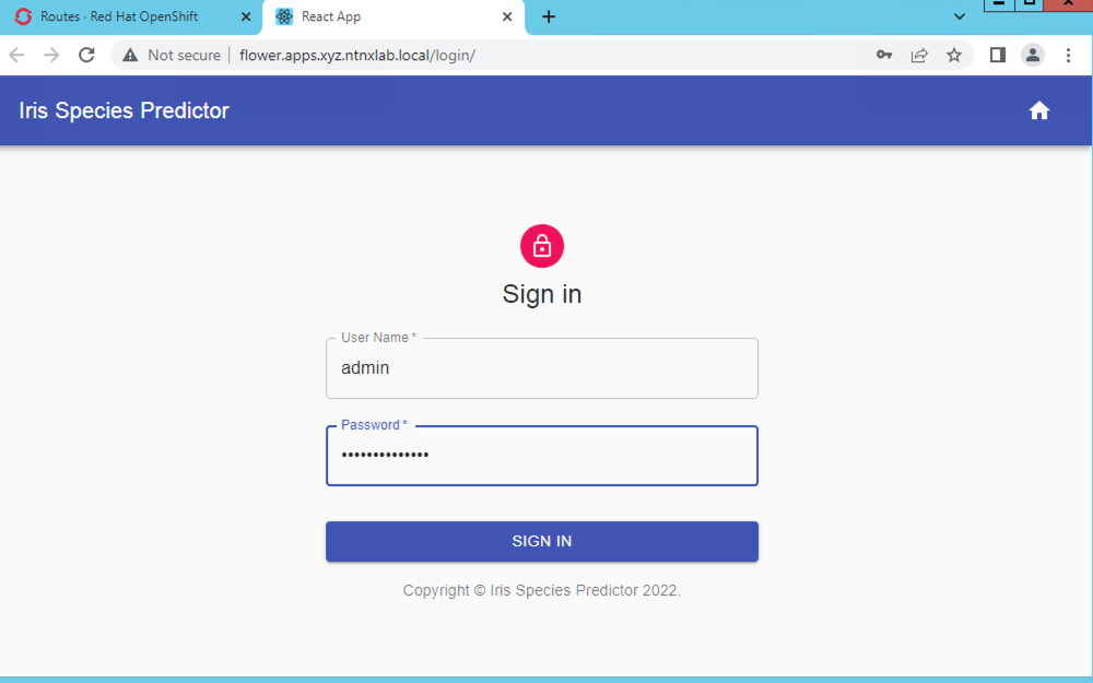 http://flower.apps.ocpuserXX.ntnxlab.local/http://flower.apps.ocpuser01.ntnxlab.local/Enter the following credentials and click on SIGN IN