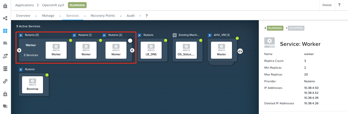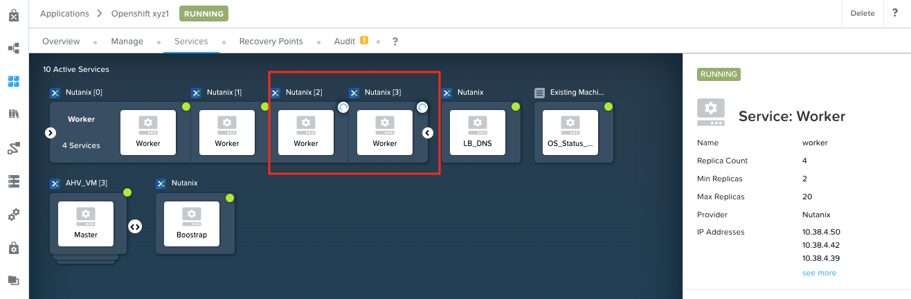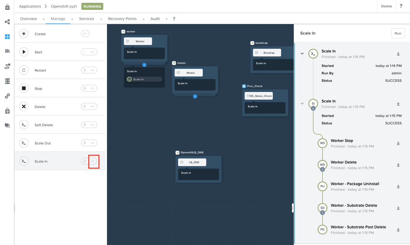 Once the Scale In action is successfully completed, go to the Service tab of the VM and check if one worker nodes is deleted