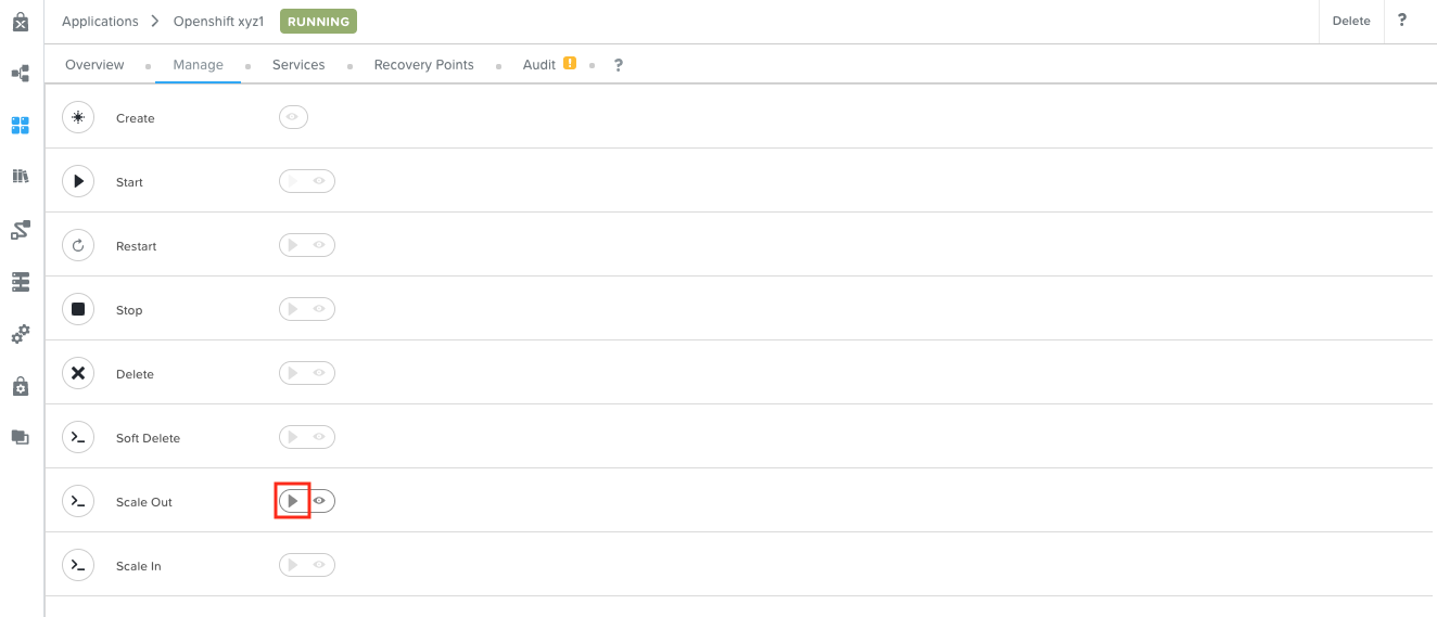 For the purposes of the lab, we will achieve scale in/out operations by triggering a Calm Action manually. These Calm Actions can also be triggered using REST calls from an automation script.