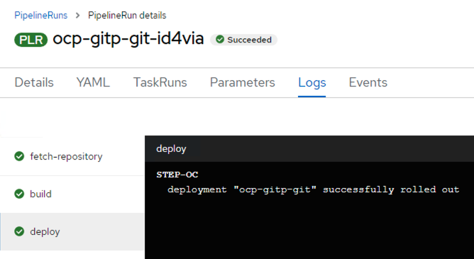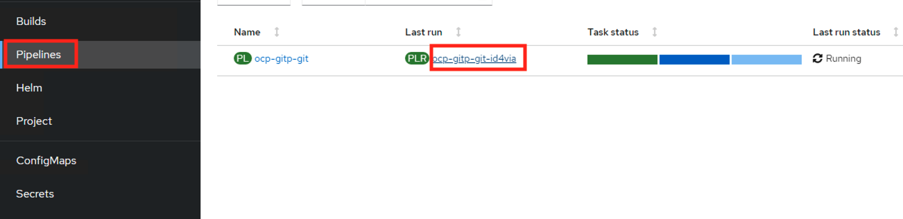Click on Last run pipeline run (PLR) corresponding to your ocp-gitp-git pipeline you created