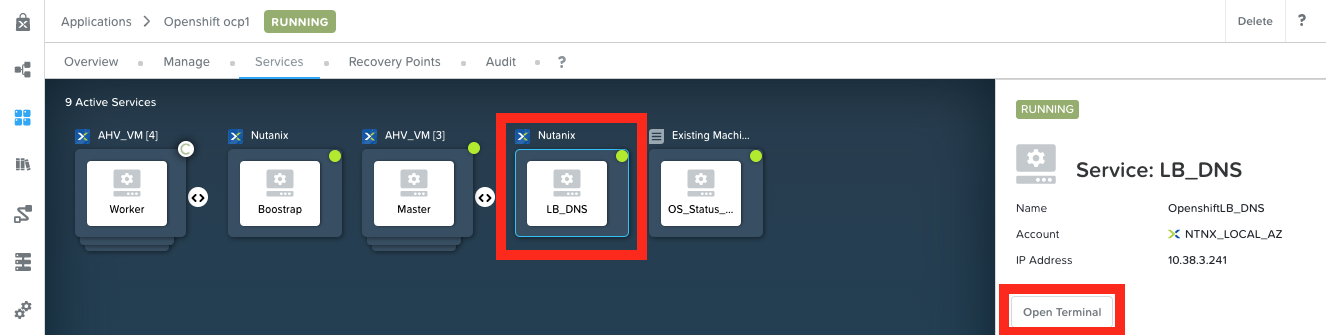 Export your kubeconfig file to envexport KUBECONFIG=/root/xyz/auth/kubeconfigMake sure to use your passwordoc login -u kubeadmin -p xxxxx-xxxxx-xxxxx-xxxxxIn Calm go to your Applications > Openshift xyz1 application