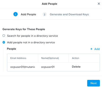 Enter a email (ocpuserXX@nutanix.com) and name (ocpuserXX)