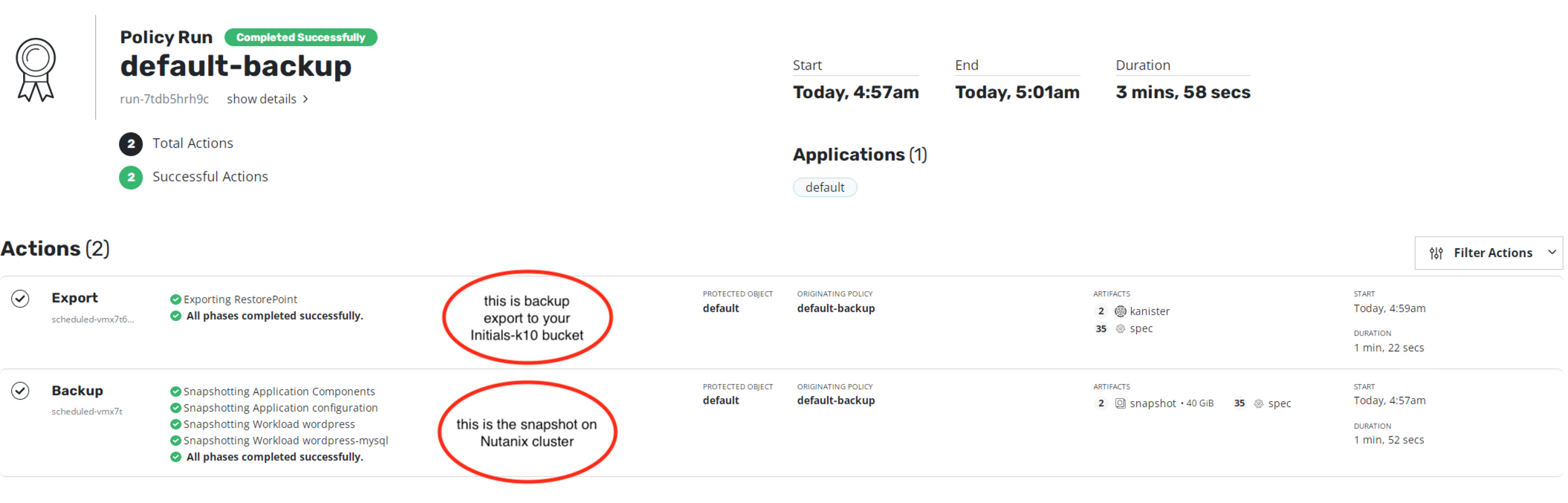 The volumesnapshot object we created along with other Objects in Nutanix CSI provider has enabled us to do this snapshot and backup