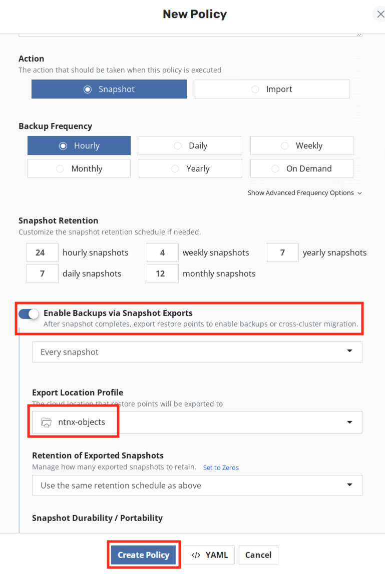 Make sure Export Location Profile is point to ntnx-object location profile we created before