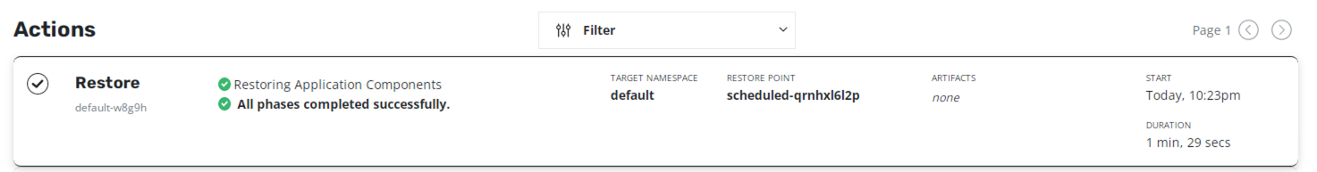 restore-data-4887h 0/1 Terminating 0 48sGo back to Kasten Web UI and you will see restore completing successfully