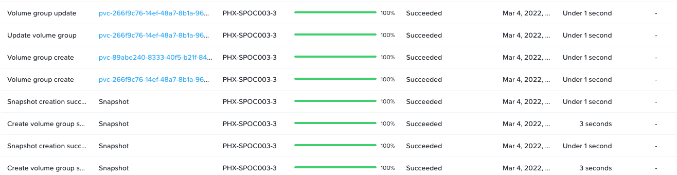 You can go to Prism Central > Tasks to see snapshots tasks requested by Kasten