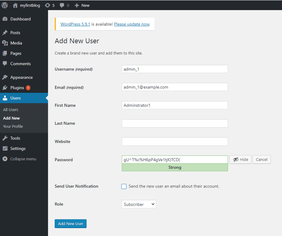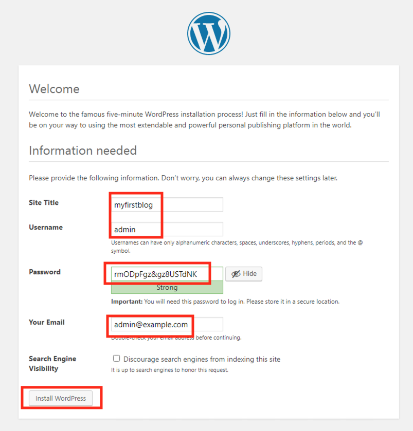 Note the auto-generated password and copy it somewhere safe. You are also free to use your own password.